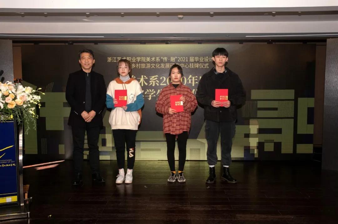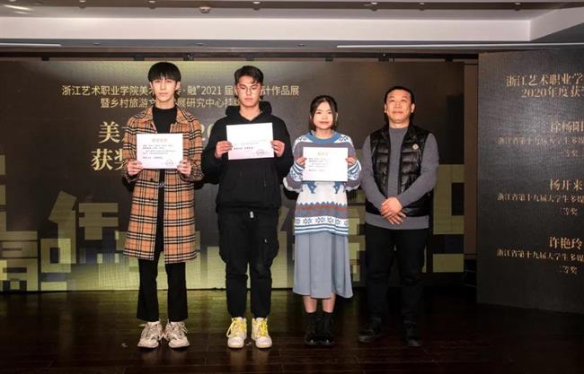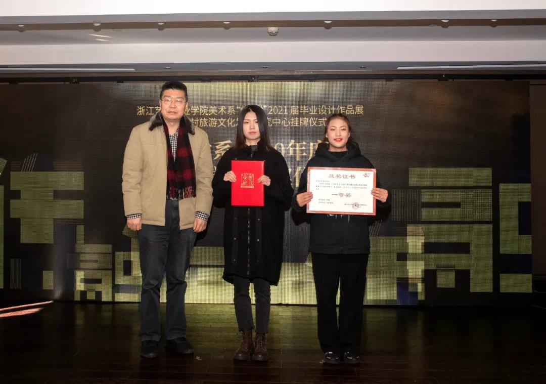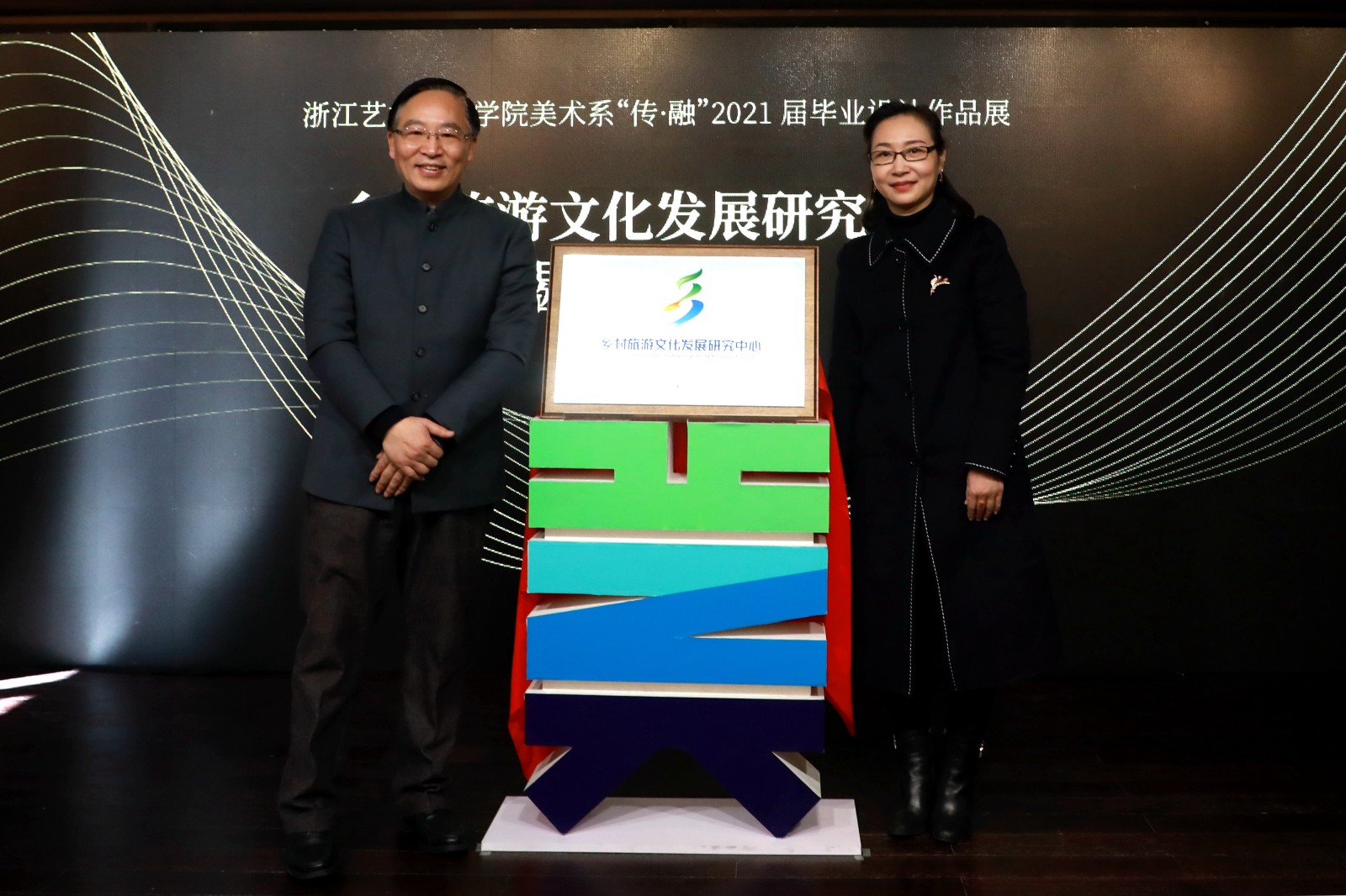 会上,还举行了浙艺美术系2021届毕业设计展揭幕仪式。此次毕业设计作品展以“传·融”为主题,包括浙艺美术系舞台艺术设计与制作、服装与服饰设计、广告设计与制作、动漫设计、环境艺术设计等专业作品。师生们打开脑洞,用极具现代性的艺术创意,融传统文化和时尚元素、现代科技与艺术媒体于一体,强调独特与美感、时尚与多元的有机统一,创作出令人惊叹的艺术效果。展览集中展示了浙艺近年来在服务乡村振兴中的成果,包括乡建文旅设计成果、乡建设计建设模型、演在乡间送文化、育在基层种文化等内容。