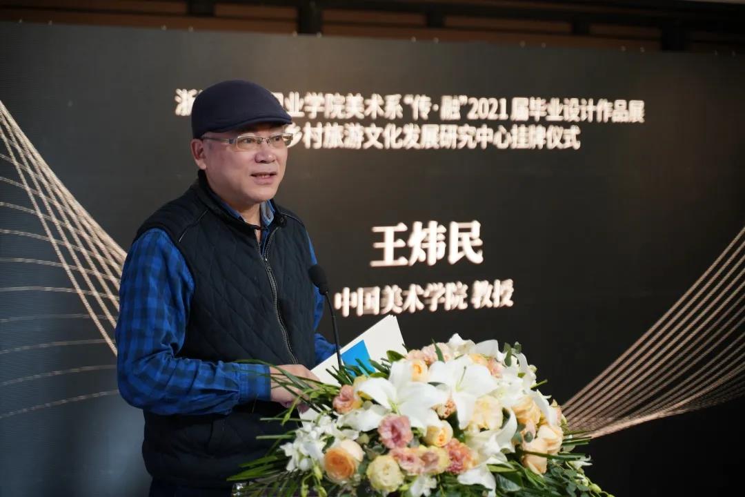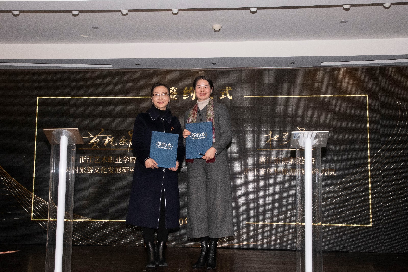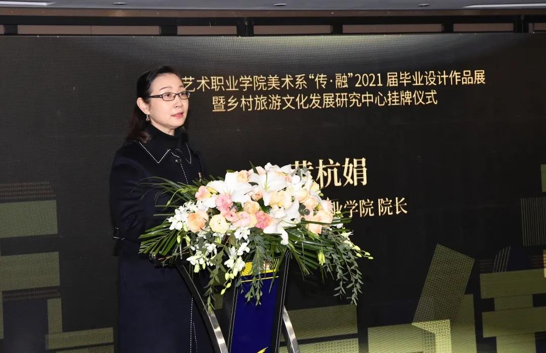 黄杭娟致辞。她说,浙艺以产教融合为主线,深化专业改革,扎实推进课程建设,扩大学术视野,强化专业特色,创新人才培养模式,积极投身浙江美丽乡村、基层文化建设,为推动乡村振兴,服务新农村文化建设作出了积极贡献。乡村旅游文化发展研究中心的成立将为学校服务乡村振兴的新引擎,高水平绘就新时代美丽乡村新画卷的助推器。学校将乘着国家职业教育提质培优扩容的改革东风,扎实推进“双高”建设,深入实施乡村旅游文化发展研究,为助力“重要窗口”和文化浙江、诗画浙江建设作出新的更大贡献。