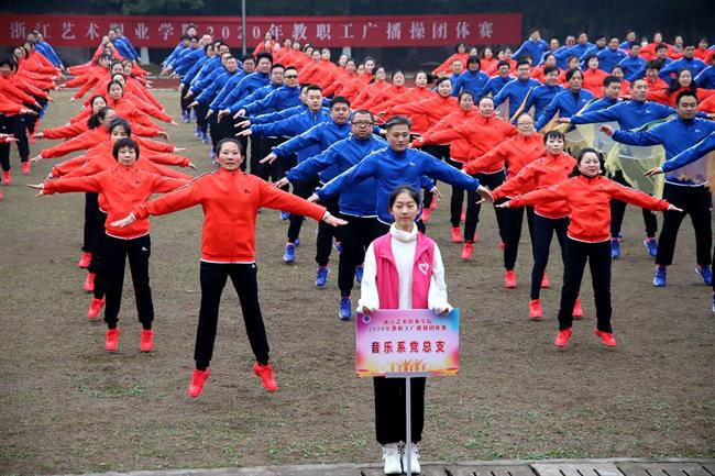 “强体魄、展风采、增活力、促发展。”128日,浙艺2020年教职工广播操团体赛在风雨操场举行。校领导薛亮、黄杭娟、章轲、徐芳、沈军甫、支涛出席,校党委副书记夏开堂主持。