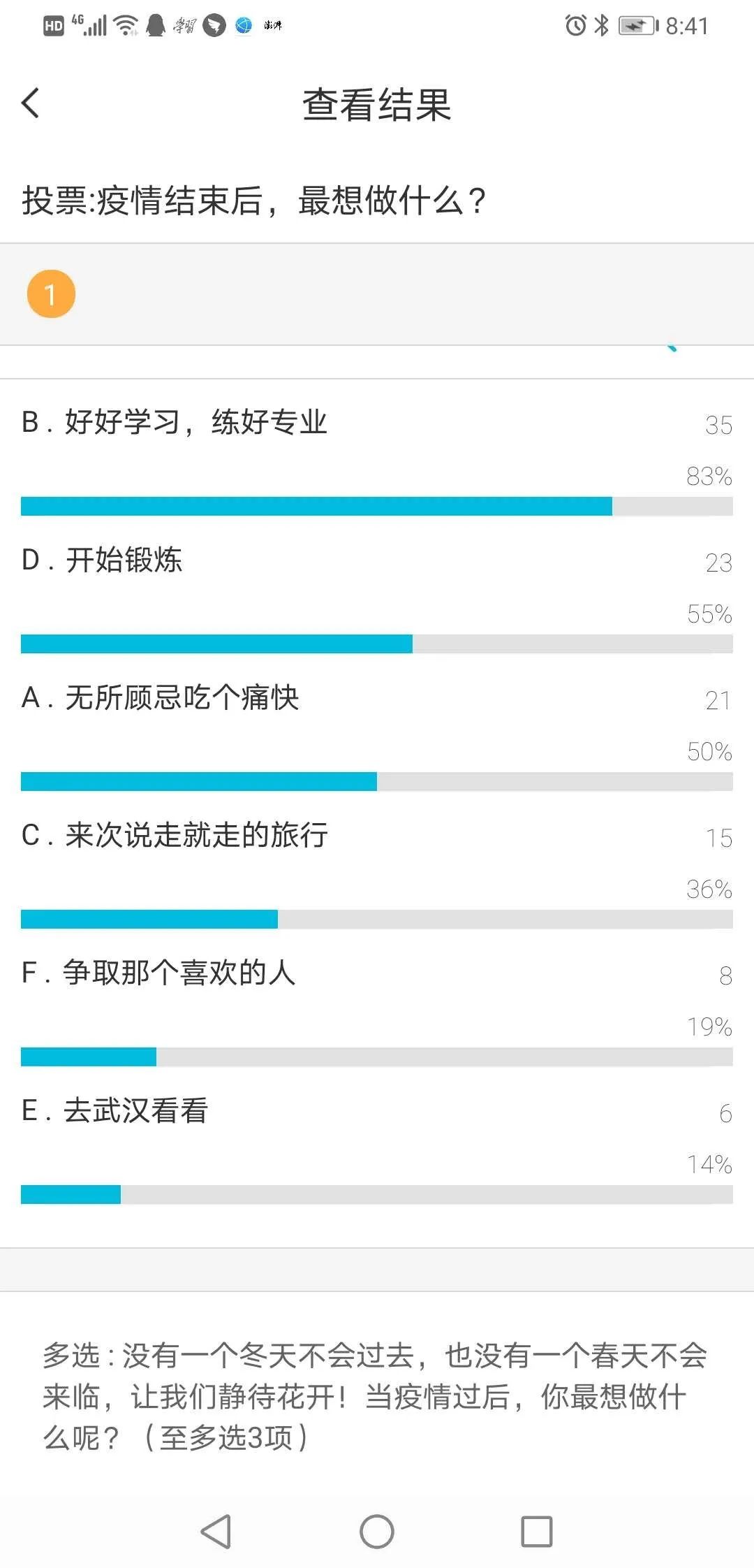 《思想道德修养与法律基础》教研室将战“疫”故事与线上教学相结合,将爱国主义精神、家国情怀、道德与法律规范教育相融合。省级思政理论课名师工作室负责人、社科部副主任胡卓群从各个行业在疫情防控阻击战中的担当与作为入手,引导同学们从人与社会、人与自然、人与他人与个人自身深入思考,从笃定信念、学会担责,心存敬畏、理性从容,合理规划、涵养自我和同舟共济、“艺”起抗疫四个方面坚定学生打赢疫情防控阻击战的信心,弘扬和传递正能量,期许学生以多样的艺术形式传递关怀。通过云班课同步开展“疫情结束后,最想做什么?”小调查和“亲历疫情防控战感悟”头脑风暴,同学们选择好好学习、练好专业和锻炼身体等,表达了迫切的学习愿望、对在疫情防控一线的“最美逆行者”的敬佩和强烈的责任使命意识。基础教研室、综合教研室老师们通过创新课堂教学方式,充分利用腾讯课堂、云班课、学习通等多种教学平台,使用教学任务单,明确教学要求,同学们参与度高、各抒己见、踊跃发言。疫情防控阻击战使学生更加成熟,增强了学生的责任之心、仁爱之心,能更深刻地认识到处理人与自然和谐共生的重要意义,对于坚定人民立场,培养塑造正确的世界观、人生和价值观、厚植爱国情怀起到了积极意义。