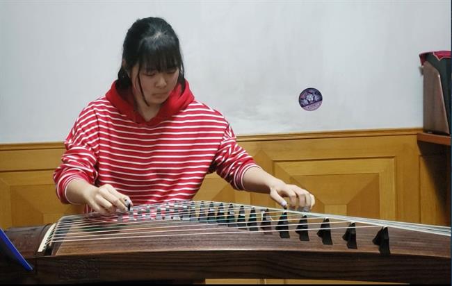 音乐系学子拿起乐器、拨动琴弦,每一个音符都在“云”端跳跃,这些日子在家上课练习,琴艺一定精进不少。
