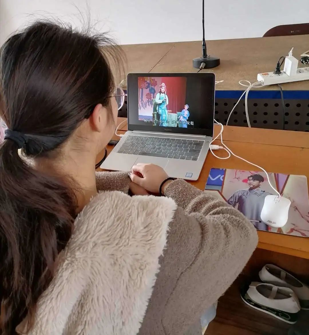 通过两周的网上教学,我初步熟悉了各类线上教学平台。为了提升课堂效率,提高教学效果,我用课前布置录音、视频作业,然后随时听、看学生提交的音频、视频作业,及时记录每个学生作业中的问题。在课堂上一一点评作业,针对每个学生不同的问题在线一一指导,示范、模仿、讲解、启发,督促学生反复练习;19越剧班的语音课和唱腔课还安排相互听评作业和录音、录视频内容。相互听评作业能加强同学之间互帮互助,互相学习交流的意识。线上唱腔、语音教学学生可以随时随地学习,增强了学习的主动性和自学能力。