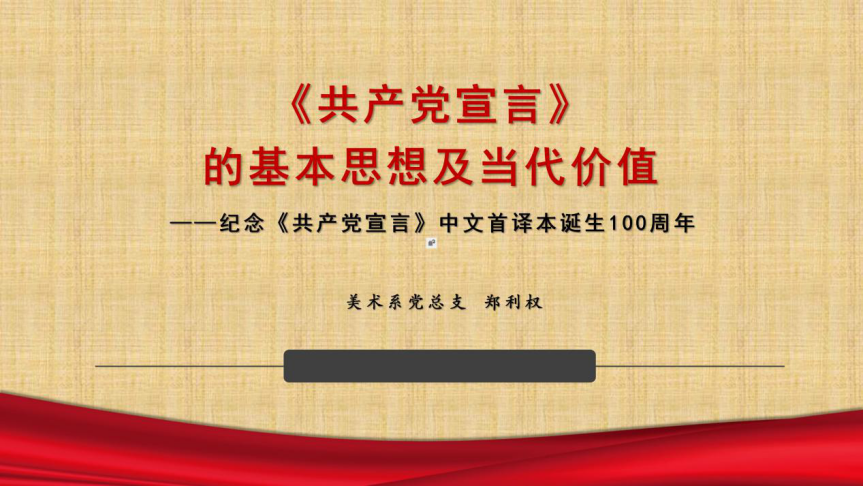 大道薪火 ——美术系党总支举行纪念《共产党宣言》中文首译本出版100周年主题党日活动