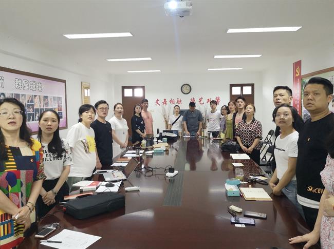 活动开始,全体党员起立唱国际歌,歌声中传递出舞蹈人的团结和满满的正能量。曹亮红领誓,大家一起重温了入党誓词,短短几十秒的齐声宣誓,坚定而有力量,映射出舞蹈系党员教师队伍积极向上、一心向党的信心和决心,“对党忠诚,积极工作,为共产主义奋斗终身,随时准备为党和人民牺牲一切……”