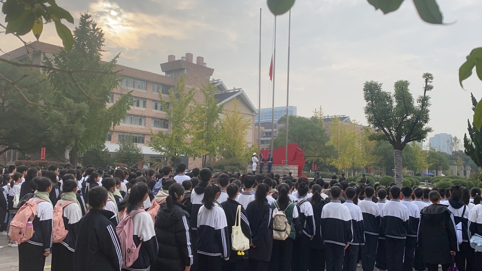 劳动教育实践课结束后,全体学生在中心广场集合,开展升国旗仪式。党委学工部副部长,团委书记郑吟作国旗下讲话,对全体中学生提出希望。