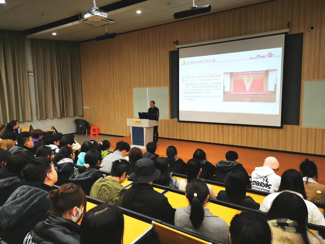 在“两个一百年”奋斗目标的历史交汇期,党的十九届六中全会审议通过《中共中央关于党的百年奋斗重大成就和历史经验的决议》《关于召开党的第二十次全国代表大会的决议》。全会公报发布后,音乐系师生掀起了学习贯彻党的十九届六中全会精神的热潮。11月24日晚,音乐系在阶梯一开展“学习十九届六中全会公报”讲座。音乐系党总支专职副书记刘梦伟主讲,音乐系辅导员、团学干部、各班班委参加。