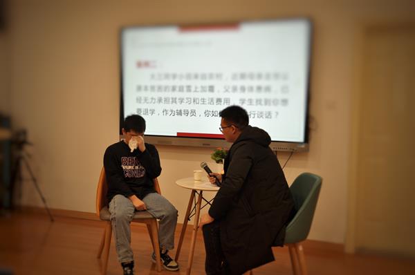 谈心谈话环节比赛邀请了有辅导员工作经历的老师们担任“群演”。“群演”们根据案例情境,结合自身学生工作经验,各显神通,还原学生“本色”。参赛辅导员们镇定自若、耐心倾听、逐步引导、层层深入地走进同学们的内心,向大家展示了平时工作中为学生答疑解惑时可能遇到的各种情境比赛在辅导员和群演互动中碰撞出热烈火花,赢得了在场观众的阵阵掌声。