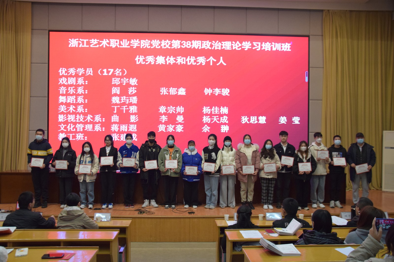 本期培训班共有167位学员参加培训,161位学员通过考核。仪式上,宣读了第38期政治理论学习培训班结业学员名单,对党校优秀集体、优秀班主任、优秀学员、优秀论文获得者、第18届党校学员论坛暨“奋进新征程担当新使命,争做新时代文艺工作者”主题微型党课比赛获奖者进行了表彰。
