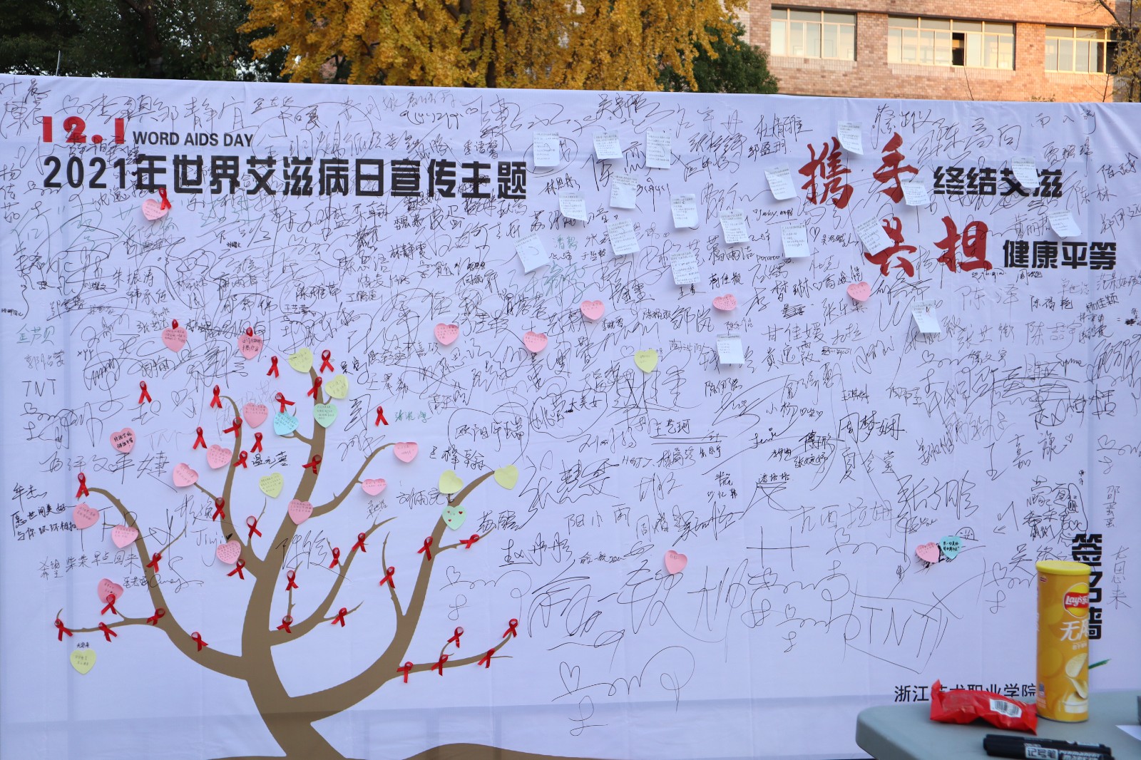 2021121日是第34个“世界艾滋病日”,为了深化新时代学校健康教育,与抓好新冠肺炎疫情常态化防控相结合,提升我校防艾、禁毒等安全健康知识知晓率,不断提高在校学生健康素养,学工部、校团委、总务处(医务室)、校学生会在2021年校园科技文化节期间结合“生命至上 终结艾滋 健康平等”的宣传主题开展“世界艾滋病日”宣传周活动。