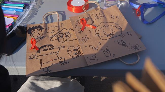 防艾知识竞赛。知识竞赛由常规线上答题和“猜灯谜”趣味挑战赛组成,同学们积极参与,充分发挥日常所了解到的防艾知识,更是在竞赛中进一步增长了相关知识。现场还设置了手提袋设计环节,参与答题的同学们发挥自己的想象力和创造力,在手提袋上进行手绘涂鸦,设计自己喜欢且独一无二的手袋。