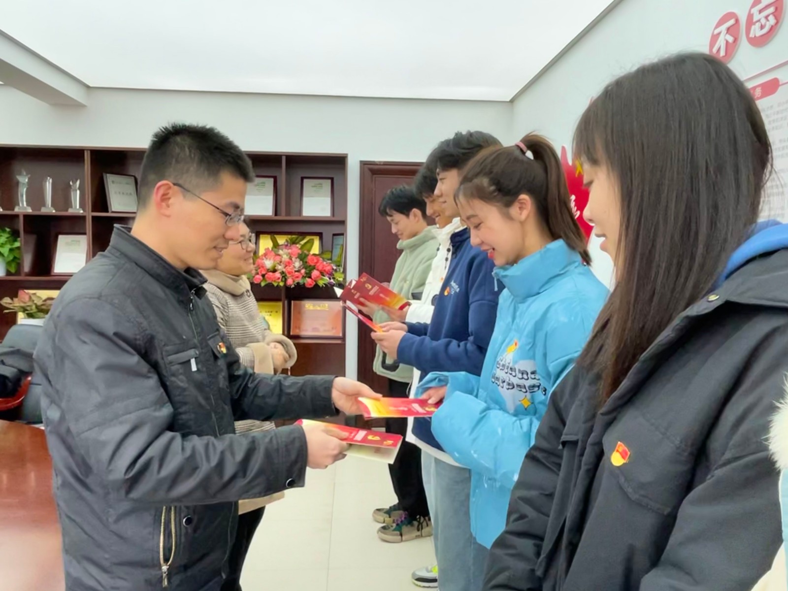 江晓新同学们加入党组织表示祝贺,希望新党员不但要在组织上入党,更要在思想上入党,要永远保持入党的初心,把入党作为人生、事业的新起点。全体党员同志支部书记王玉簪的带领下进行集体宣誓,面向党旗,举起右手,掷地有声地宣读“我志愿加入中国共产党,拥护党的纲领,遵守党的章程,履行党员义务......”每名党员都发自内心的声音宣告了自己对党忠诚的决心。