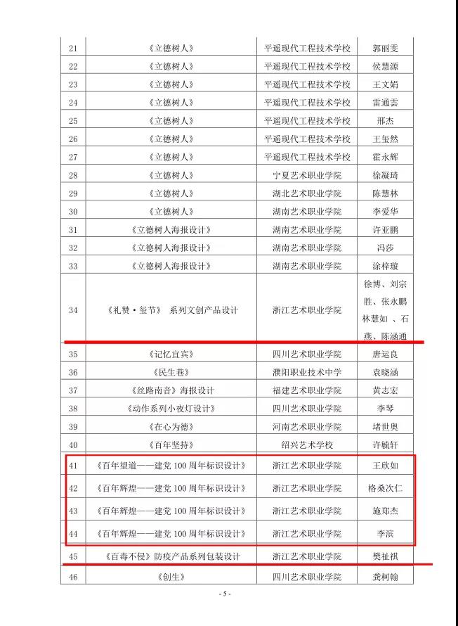 1月30日,全国文化艺术职业教育教学指导委员会公布2020年全国艺术职业院校“立德树人”校园艺术作品在线展示活动入选作品名单,我校13个作品入选。舞蹈作品《山村记忆》入选校本剧(节)目,作品《Back To Nature Save The Future》(作者:沈思伶)、《一方有难 八方支援》《“罩”顾好自己,从拒绝谣言开始》(作者:彭瀚莹)、《礼赞·玺节》系列文创产品设计(作者:徐博、刘宗胜、张永鹏、林慧如、石燕、陈涵通)、《百年望道——建党100周年标识设计》(作者:王欣如)、《百年辉煌——建党100周年标识设计》(作者:格桑次仁)、《百年辉煌——建党100周年标识设计》(作者:施郑杰)、《百年辉煌——建党100周年标识设计》(作者:李滨)、《百毒不侵》防疫产品系列包装设计(作者:樊祉祺)、《安全通行—遵守规则,远离病毒》(作者:梁天怡)、《法自然·共生》公益海报设计(作者:张露、麻均辉)、《嫁》(作者:李雯清)入选艺术设计作品。