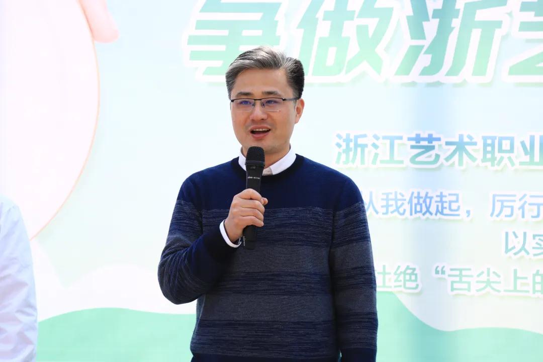浙艺后勤服务有限公司食堂厨师长吕洪宣读“节约粮食,光盘行动”倡议书,倡导师生树立节约光荣、浪费可耻的思想意识,做光盘一族,珍惜粮食,拒绝浪费。彭云波带领影视技术系光盘行动宣传员代表共同承诺,将在光盘行动宣传期间,履职履责,为光盘建设、文明校园建设献出己力。所有影视学子一同在“争做浙艺‘光盘人’”的倡议板上签名承诺。现场举办趣味文明知识竞赛活动。