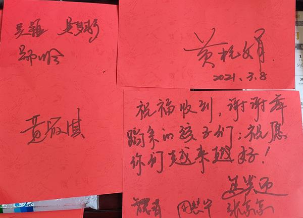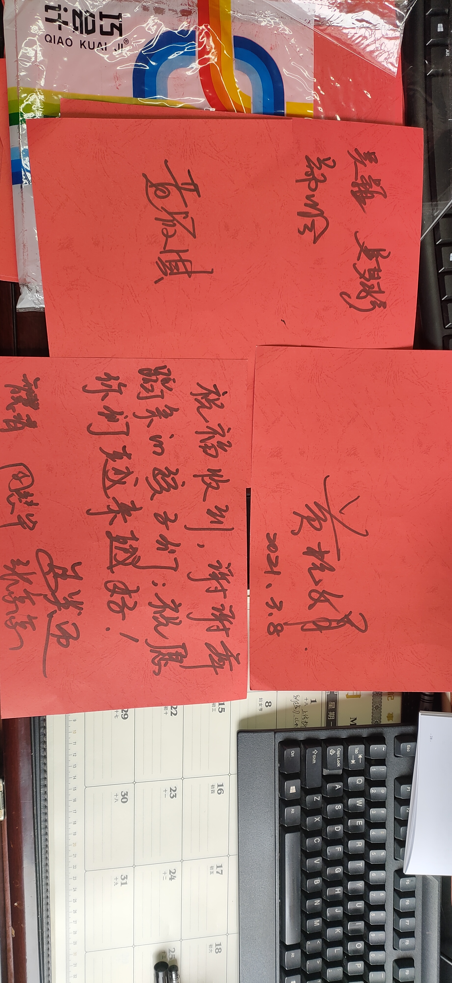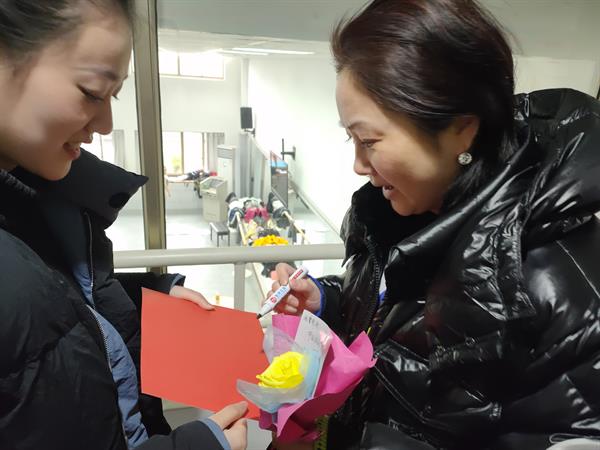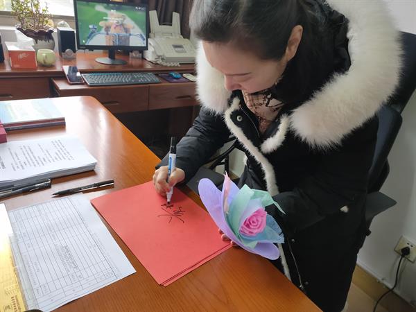 3月8日清晨,同学们将一朵朵五颜六色的花束献给平日里辛勤浇灌艺术之花的老师们,这是一种爱的回馈。老师们接过“鲜花”,露出开心的笑容,她们在签名簿上签字,留下了温暖的印记。