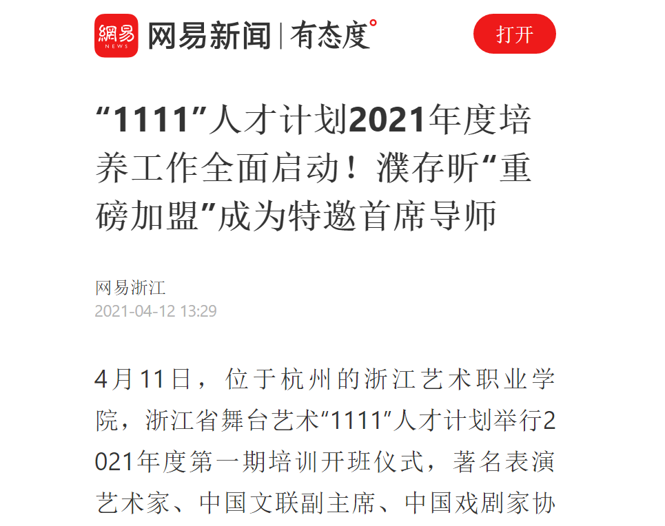 网易新闻:“1111”人才计划2021年度培养工作全面启动!濮存昕“重磅加盟”成为特邀首席导师