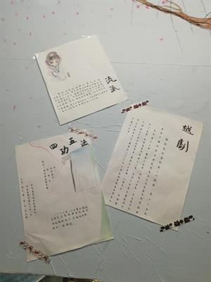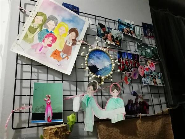 2019级小百花班学生周润琪说:“寝室就是我们在学校的家。美化寝室时,我们突出戏曲主题,添加了各种戏曲元素、戏曲人物,张贴了“四功五法”等戏曲特有的小知识和励志的小句子,通过美化活动把我们的生活空间变得更有戏曲氛围。”