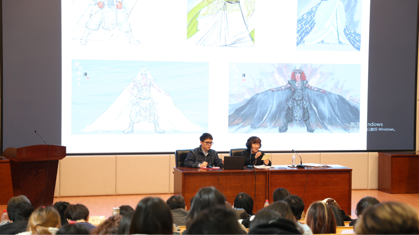 蓝玲设计的作品前后荣获近百项国家级大奖,被戏剧界誉为“造美之人”。讲座中蓝玲围绕戏曲服装设计的市场前景、设计人物服装的过程和步骤以及服装造型设计必须掌握的基本知识与技能展开,强调美术基础、服装 “一生只做一件事,一直做到了现在,戏曲天地很广,希望师生们能走进去,同学们就一定会爱上它”,蓝玲谈到,通过此次活动同学们深刻的体会到设计的功力对塑造舞台人物的重要性。