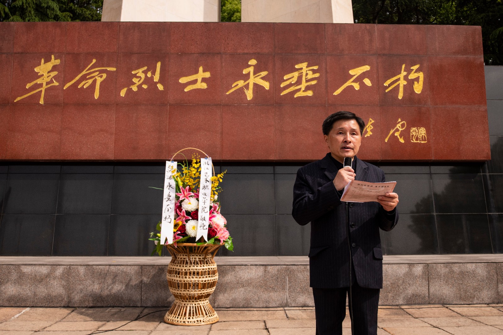 马向东主持仪式并讲话。他说道:百年来,是一代代中国共产党人以热血浇灌理想,以生命践行信仰,才换来今天的锦绣山河和美好生活,我们应永远尊敬和爱戴这些革命烈士,做到裘古怀烈士所说的“胜利的时候,请你们不要忘记我们”。他强调,我们每一次致敬英烈,是对初心的叩问,也是对精神的唤醒,更应汇聚起不可战胜的磅礴力量,在新征程上慨然前行,勇立潮头。
