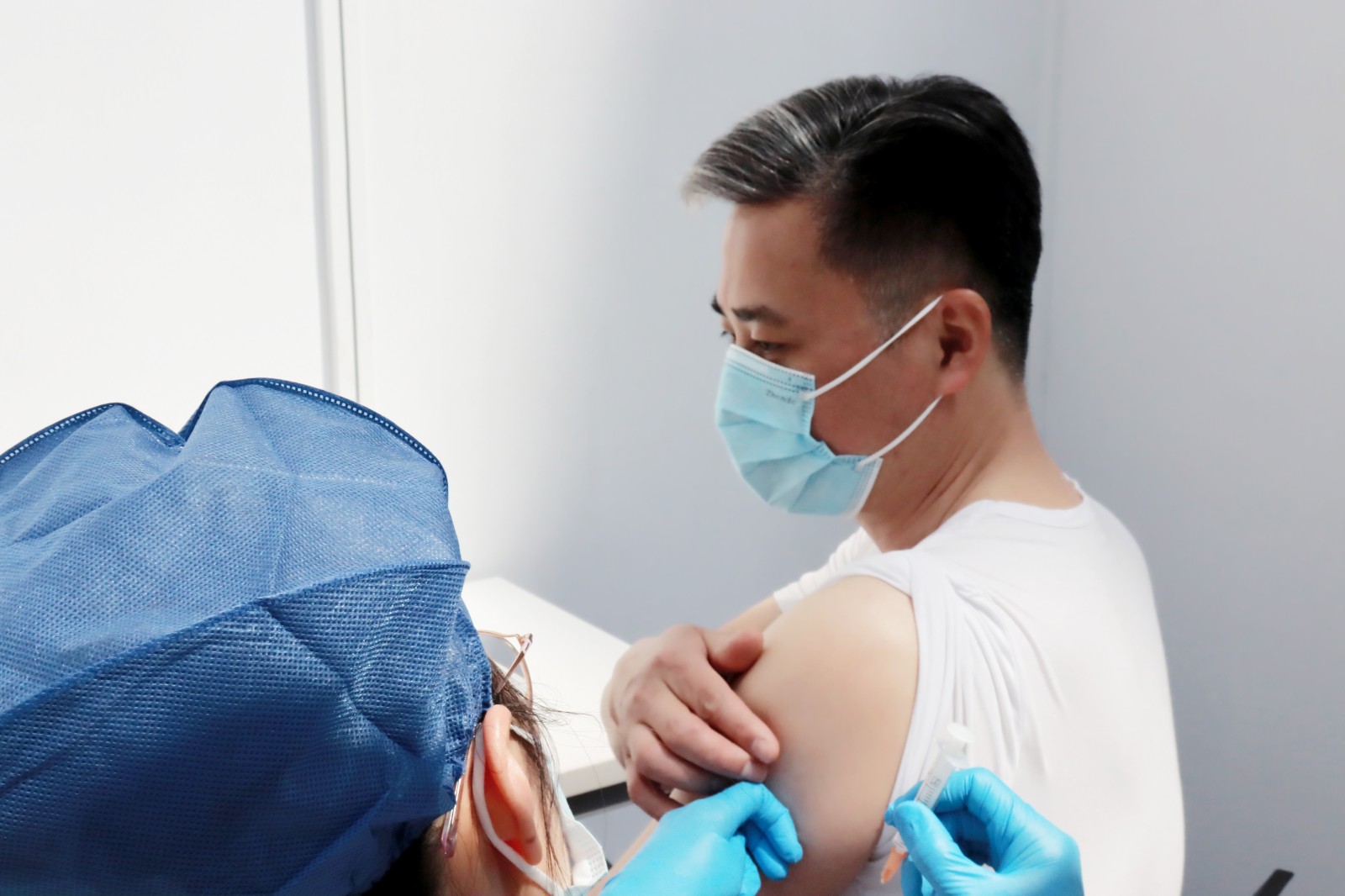 校党委书记薛亮在接种