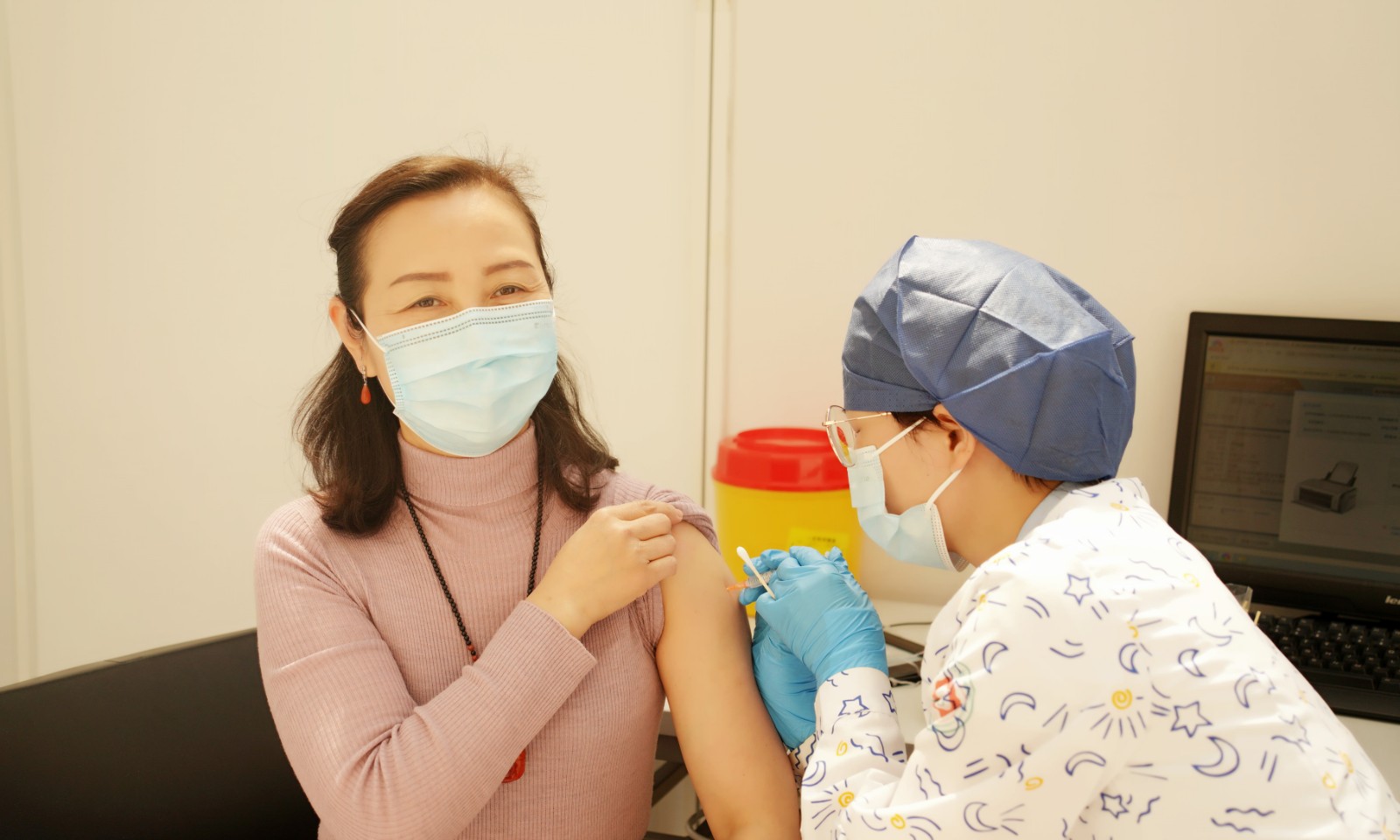 院长黄杭娟在接种