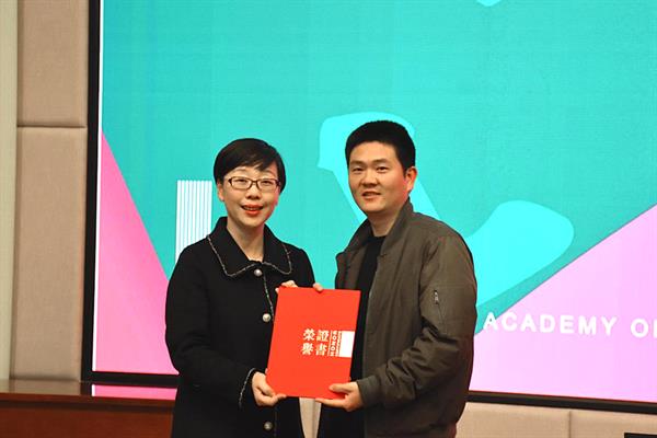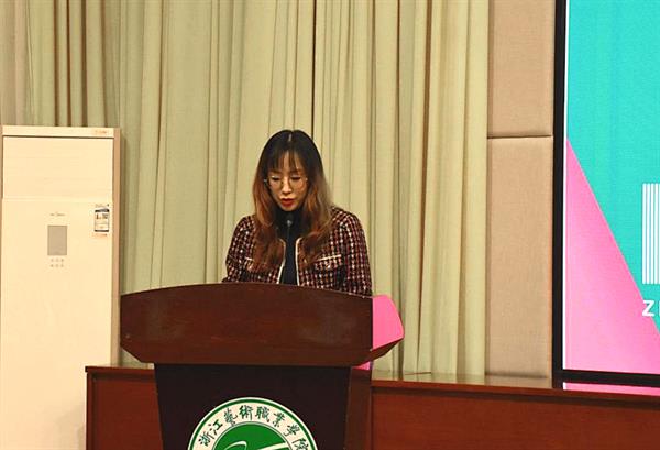 教研室主任商易文作为教师代表发言。她表示,作为一名专业教师,有责任为营造以学术研究弘扬人文精神、奠定科研基础的校园学术文化贡献力量,将与美术系全体教师共同努力,坚持以教学为中心,致力学术,打造精品。