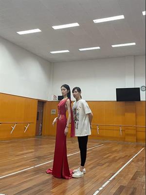 今年在赛项上与往年不同,增设服装销售直播环节,即要求选手在1分钟内,通过生动、准确的语言进行服装销售,十分考验选手的专业性和现场掌控力。根据服装销售直播环节的比赛要求,陈峥、范子昀两位老师对叶雪儿进行了全方位的指导,并邀请行业专家对直播中的色彩、面料、设计等销售要点进行剖析训练。礼服环节赛项也有赛点革新,选手需穿着中国元素的礼服在台上展示,这非常考验选手对服装展示的综合能力。赛前,专业老师对叶雪儿的台步、节奏、定位、造型、眼神等专业能力进行了调整,使其对服装的理解更具精准性。