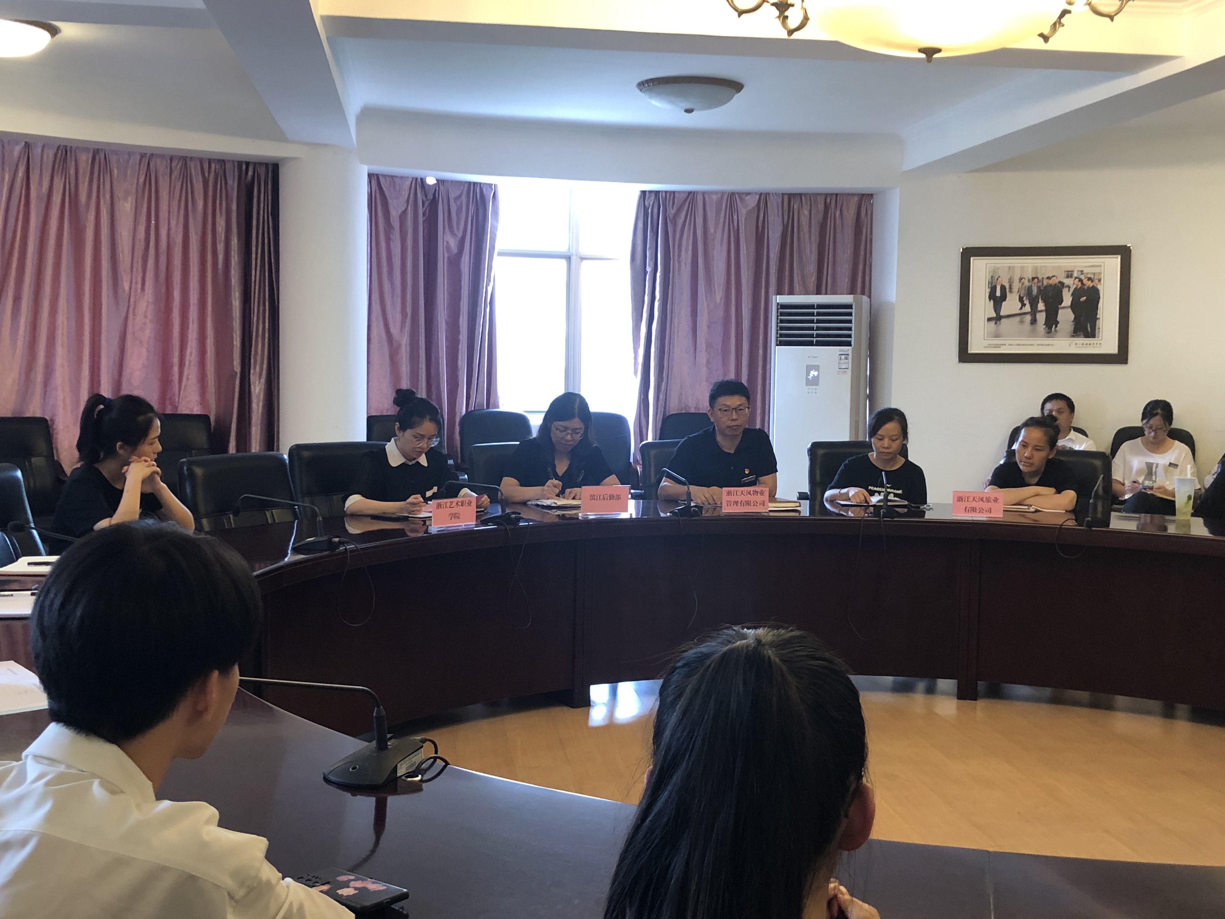 6月28日,为充分了解同学们的意见建议,切实解决实际问题,更好地服务园区师生,滨江高教园区后勤师生交流会在行政楼会议室召开。校学工部副部长吴颖、滨江后勤天风物业负责人、公寓辅导员及各院系学生代表参加本次会议。