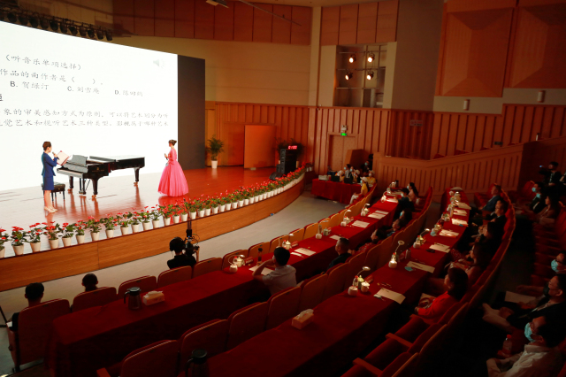 6月7日的比赛现场设在浙艺的音乐厅内。选手们依次走上舞台,除了一展歌喉,还要在一分钟之内视唱一段完全陌生的曲谱,最后抽取考题,现场接受专业知识问答测试。台下的十多名裁判都是来自全国各艺术院校和歌剧舞剧院、群众艺术馆等专家,他们根据选手的表现一一评分。