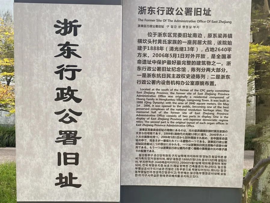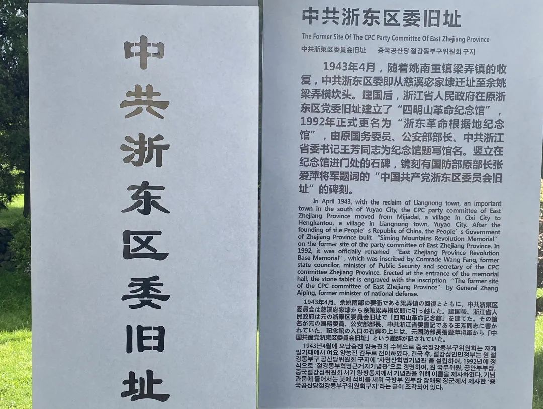 第三站红色寻访队来到浙东抗日根据地旧址群,参观了浙东革命根据地纪念馆、浙东行政公署旧址、浙东军政干校旧址。以余姚梁弄为中心的浙东(四明山)抗日根据地旧址群,是全国十九块抗日根据地之一,曾有无数革命志士在这里抛头颅洒热血,留下了中共浙东区委旧址、浙东行政公署旧址、浙东抗日军政干校旧址、浙东银行旧址、《新浙东报》报社旧址、正蒙学堂旧址等十余处红色革命遗迹,创造了中国共产党带领人民抗日救国、拯救民族危难的光辉历史。由此,四明山成为了“抗战名山”,梁弄被称之为“浙东延安”。一间间古屋,一个个革命人物、一桩桩历史事件,一件件革命文物让我们了解了当时浙东革命根据地在政治、军事、文化及政权建设等方面的情况,以及新四军浙东游击纵队从无到有,不断发展壮大,直至北撤的光荣历程。参观中,大家感受到当年革命先辈们坚韧不拔、英勇不屈和坚定共产主义信念的崇高品格和精神力量,也领略了在中国共产党领导下,革命老区建设和发展面貌焕然一新发生的翻天覆地变化。