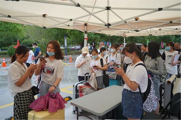 系班子、党员教师、行政线教师和21级班主任也按岗位早早等候在校园的各个角落。行李接驳、报到手续操作、公寓楼下搬运行李,井井有条的进行着。老师们坚守岗位,指挥现场工作,确保了报到工作顺利进行。