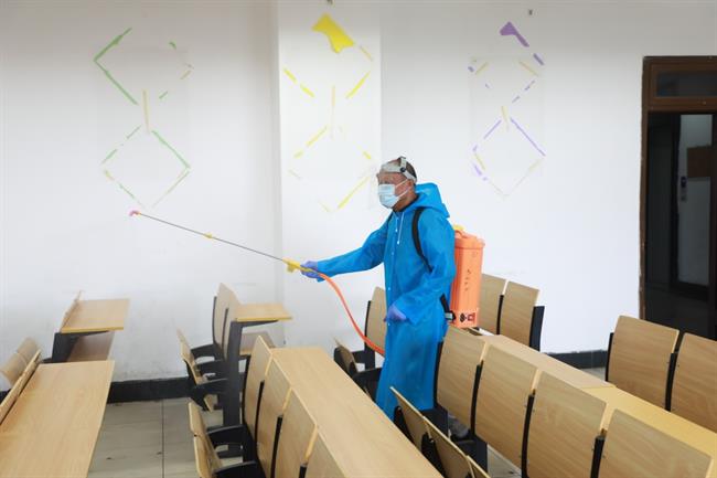 在上课环节演练中,学生佩戴口罩间隔1米以上走进教学楼。演练模拟了公共基础课课堂遇突发发热学生情景。遇学生突感不适,出现发热、咳嗽、腹泻等症状,老师立即按应急处置程序操作。第一时间报告校医,校医将其带离教室进行复检,按流程进行处置。同时,老师对同班其余学生进行疏导和安抚,就地管控等待结果。直到发热人员确诊非新冠肺炎后解除应急程序。