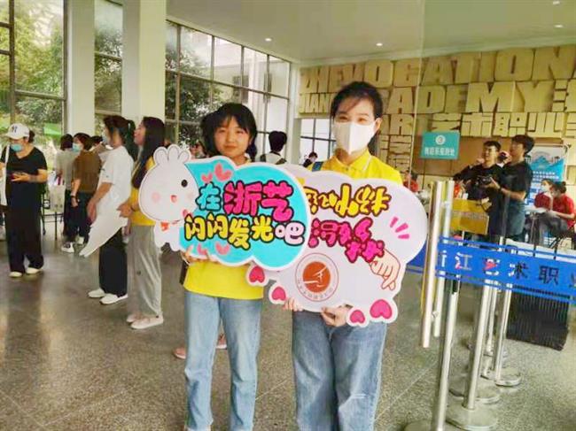 报到现场摆放了喷绘和模型,以便新生和家长们拍照留念。新学期、新梦想、新征程,新一代浙艺人今日起航。