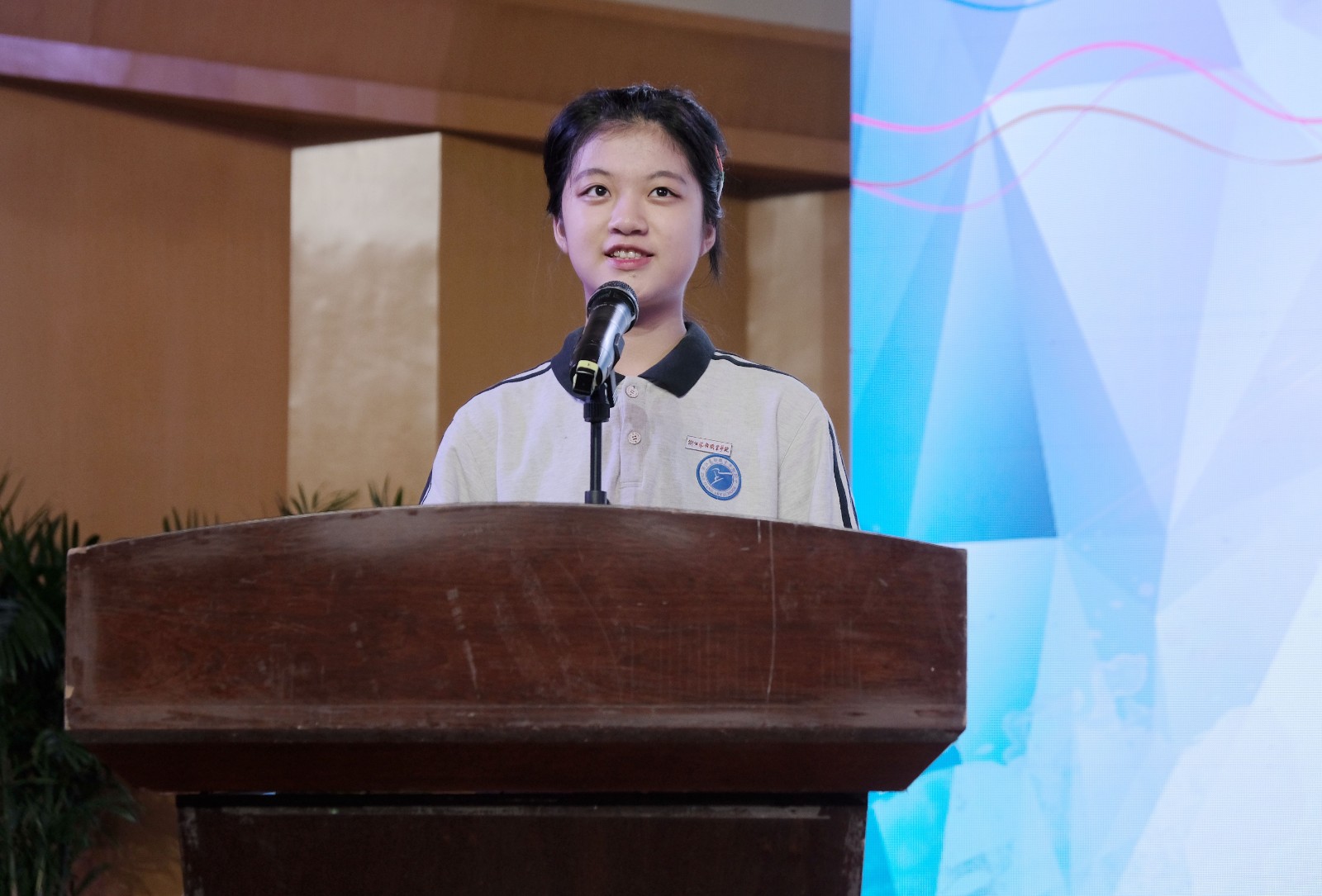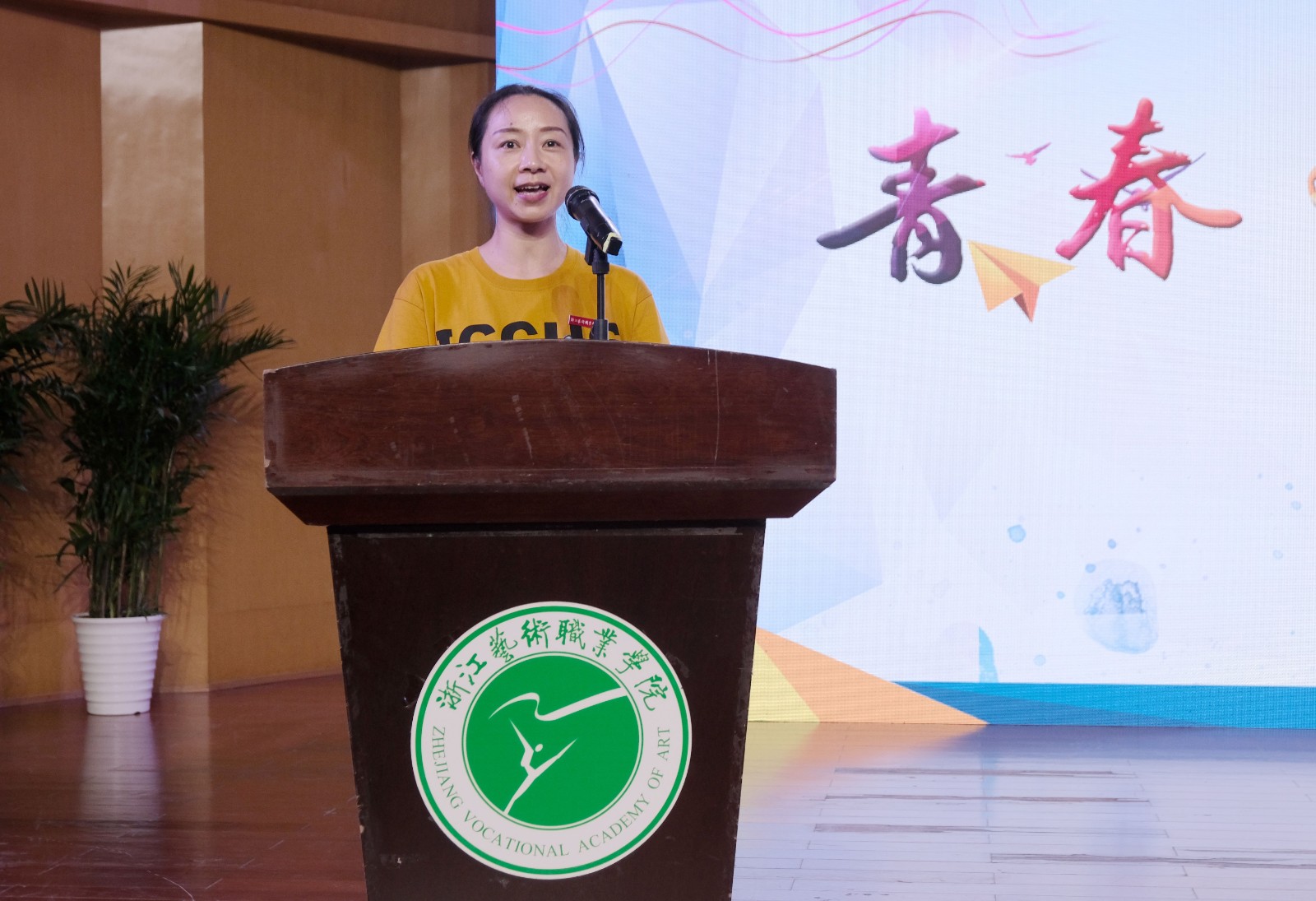 音乐系声乐五年一贯制新生陈幸儿作为新生代表发言,她表达了学艺的初心和对未来的展望。