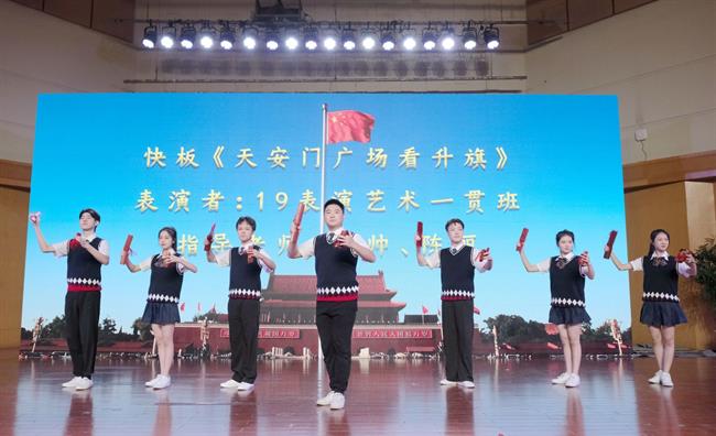 戏曲学院、戏剧系、音乐系和舞蹈系学生现场表演越剧《唱支山歌给党听》、快板《天安门广场看升旗》、笛子独奏《大青山下》和独舞《热土》。