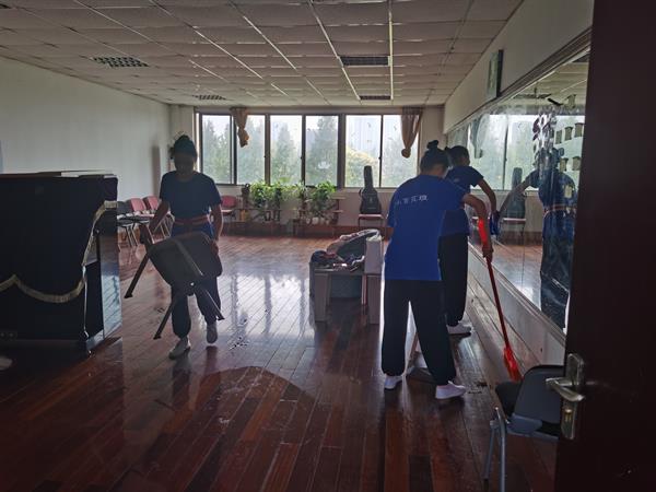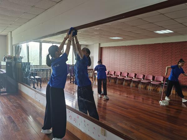 这次劳动活动,既让同学们懂得分工合作,齐心协力,又让同学们体验到劳动者的不易、珍惜劳动的成果。同学们清扫每一间专业教室,从一楼的形体教室到四楼的唱腔教室,大家忙得满头大汗,但又干劲十足。因为同学们知道,教室是她们在校的第二个家。教室的每个角落都有她们挥洒汗水、努力练功的身影。此外,大扫除也是学姐学长们对戏曲新生表示欢迎的形式之一。当阳光透过窗户映照在教室的地面,当新生踏入教室进行入学测试的那一刻,一切是那么的舒心。干净整洁的教室,让人心情愉悦,练功事半功倍。