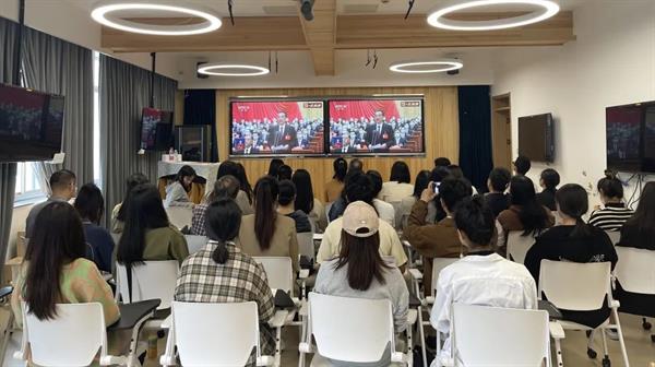演教学院全体教师和学生党员在8702教室集中观看收听了党的二十大开幕会盛况。