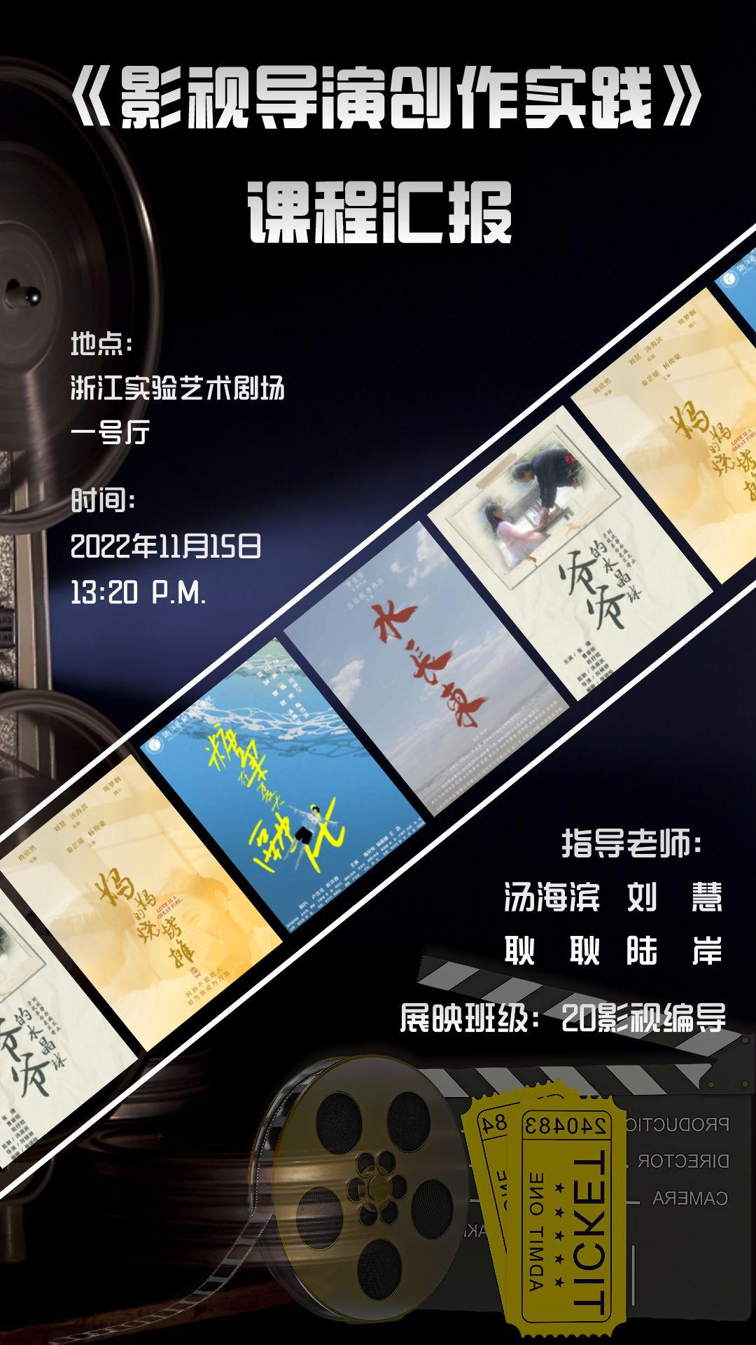 《影视导演创作实践》是戏剧影视学院影视编导专业的必修课程,以理论与实践相结合的原则,使学生全面、系统地掌握影视导演创作的基本知识和能。11月15日下午13:20,戏剧影视学院20级影视编导班微电影展映礼暨《影视导演创作实践》课程汇报将在浙江实验艺术剧场1号厅举办。本次共有4部微电影参与展映,旨在为20级影视编导专业的学生提供作品展示与交流的平台,进一步培养学生掌握剧本分析和创作、画面摄制、剪辑等基本能力。