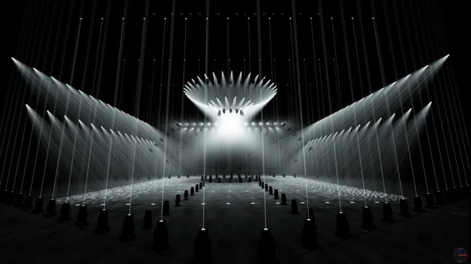 精美绝伦,多角度、多方位变化的灯光秀,展现了光与空间的完美融合