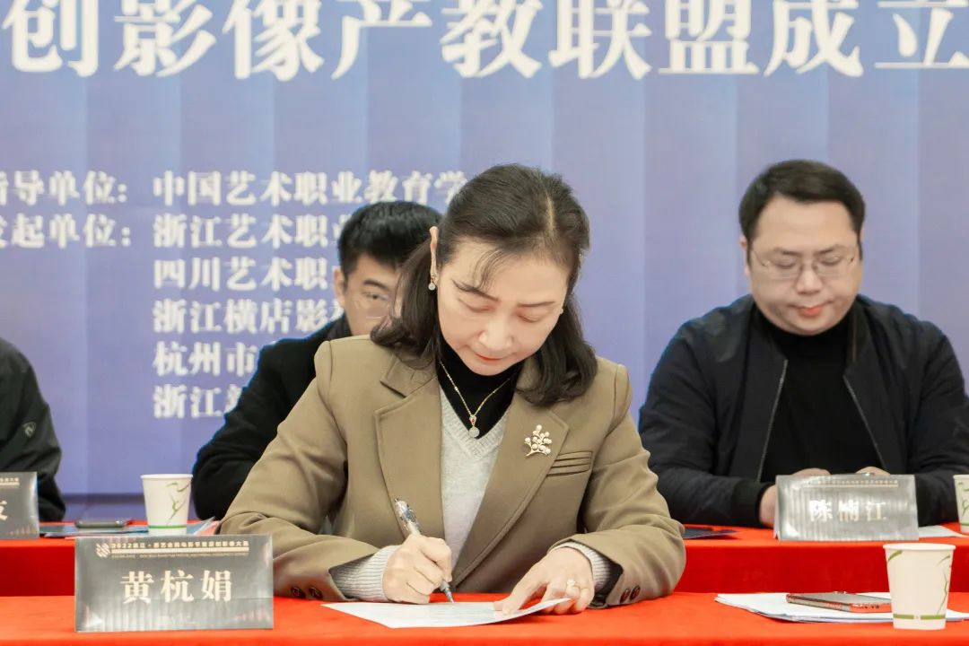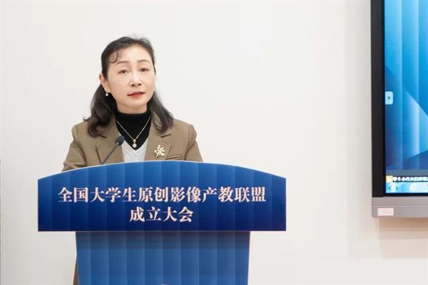 李力代表中国艺术教育学会对联盟的成立表示衷心的祝贺和美好的祝愿。他表示,联盟的成立必将在原有优势和成绩的基础上,进一步发挥其在政府和成员之间、成员和成员之间的桥梁、纽带作用,进一步促进教育链、人才链、产业链、创新链的深度融合,开创文化艺术职业教育、影视传媒教育的产教融合工作新局面。他希望各成员单位以联盟为依托,积极融入,主动作为,提高校企契合度,共同助力原创影像的蓬勃发展和影视艺术教育高质量发展,为创建文化强国贡献人文力量。