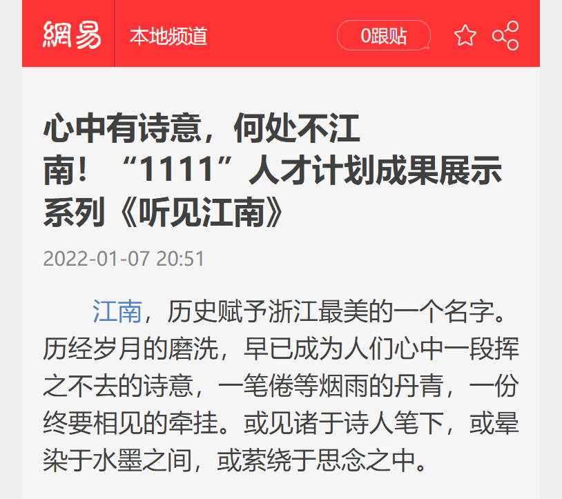 网易新闻:心中有诗意,何处不江南!“1111”人才计划成果展示系列《听见江南》