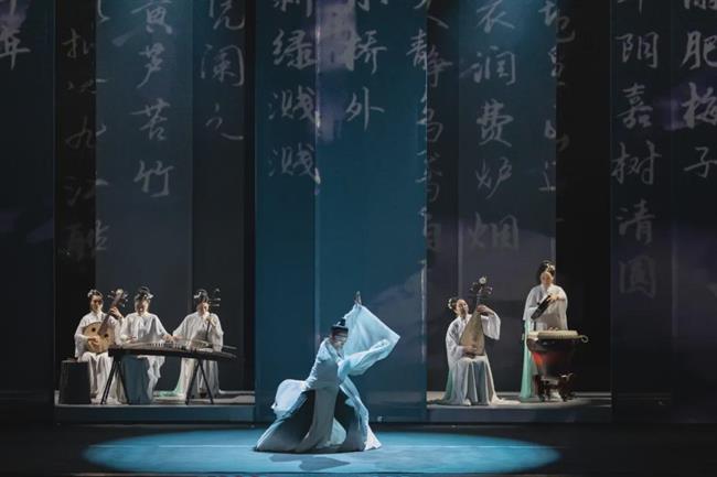 秉持民乐主题,遵循南宋精致、典雅的美学特色,《听见江南》深度融合诗词、绘画、书法等艺术讲述,并辅之以多媒体数字科技赋能,将作品从单一的听觉维度迁移到包裹性更强的情境性维度,从而呈现沉浸式、多元交互式的乐、舞、诗、画独造空间,让观众体验被当下重构的中国古典文化艺术意境。