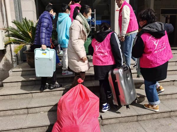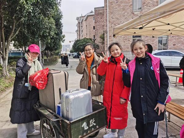 二月杭州的早晨,寒意未减半分。报到当天,戏曲学院副书记、辅导员、班主任们,早早就在校门口、公寓楼前守候,等候学子们归来。来自戏曲学院各班的志愿者们,热情洋溢,笑容满面,在老师们带领下,来回穿梭于校门与宿舍,帮助同学们搬运行李、整理内务,让同学们第一时间感受到回家的温暖。