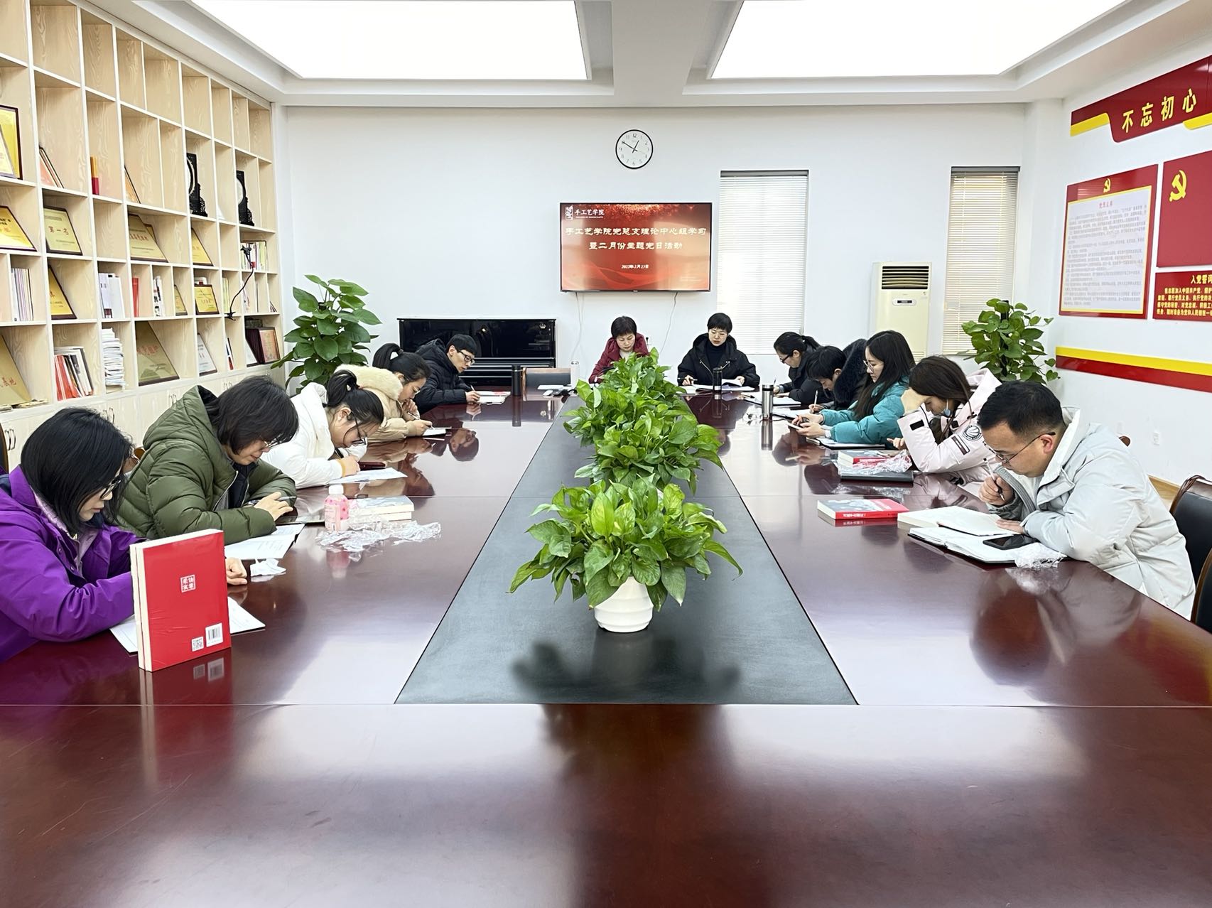 2月23日中午,手工艺学院党总支开展理论中心组学习暨2月主题党日活动,会议由党总支书记、副院长金银琴主持,全体党员老师、各教研室主任参会。