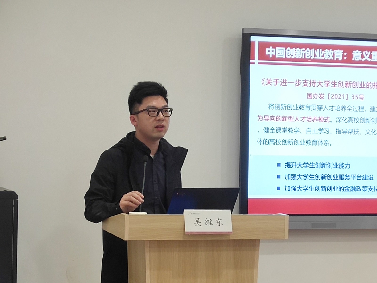 吴维东为大家普及了创新创业大赛的现状,以历年的数据为基础,并结合我校专业特性,为大家讲解了各赛道的具体规则,让老师们充分了解相关赛事。为了更好地让老师们感受“互联网+”大赛的浓郁氛围,吴老师以过往优秀项目为例,让大家身临其境地感受在“互联网+”的时代背景下大学生们的青春与激情。