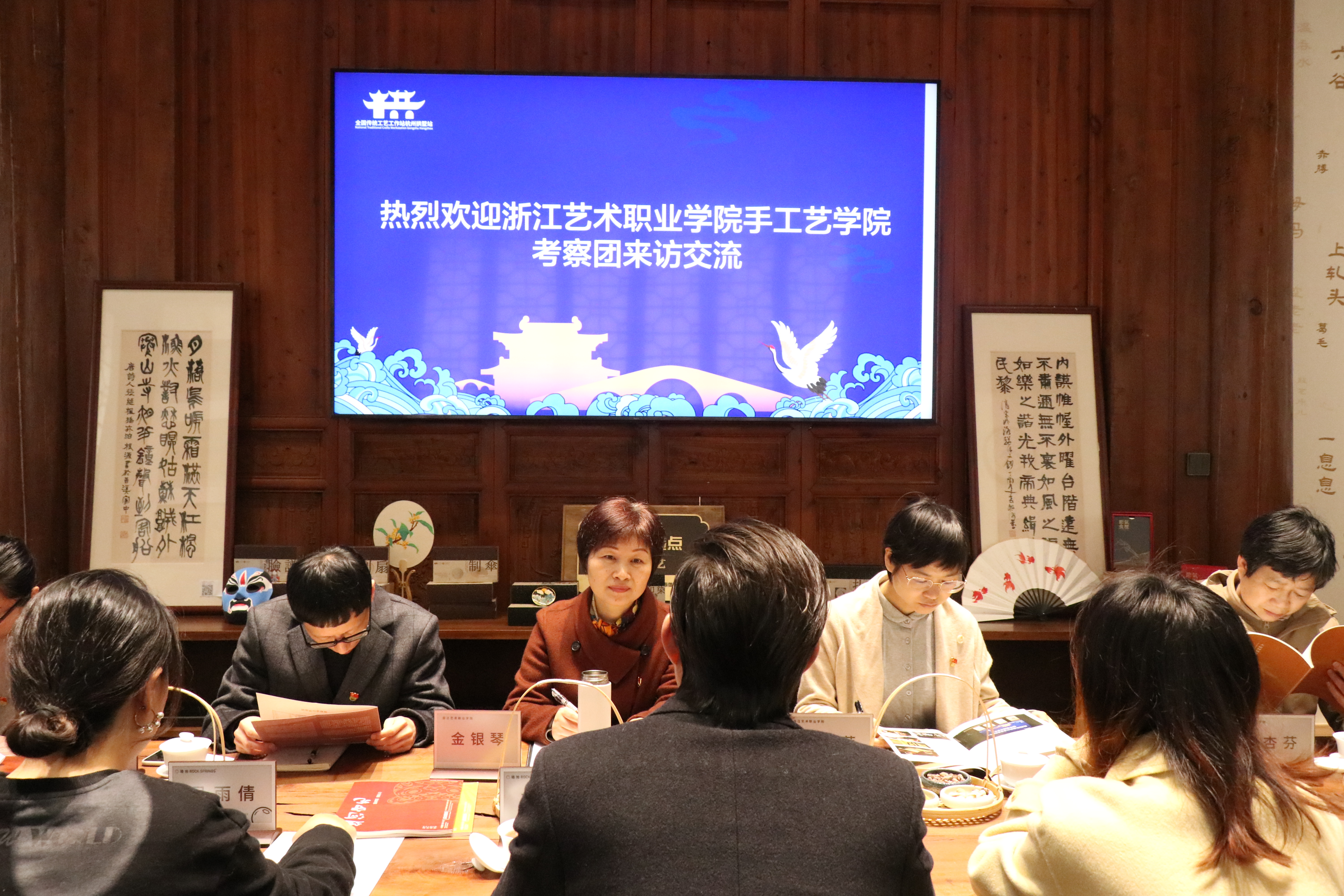 在交流会中,手工艺学院党总支书记、副院长金银琴就手工艺学院的专业概况、课程设置、学生培养方式、实践实训场地等进行介绍。金银琴表示,手工艺学院致力培养传统工艺新人,积极探索产教融合、校地校企合作新模式,期望通过校企合作,共同打造非遗传承与保护课程、开发非遗研习课程和研习产品、拓宽学生实践基地,以多层次、多维度的合作,助推非遗保护、传承、研究和传播。