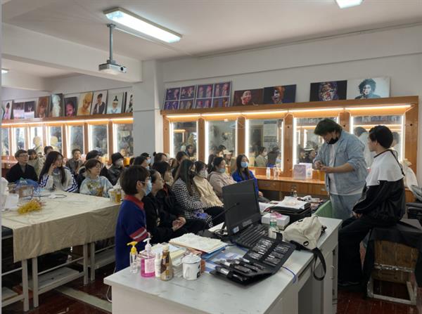教学方法:采用理论实践一体式教学法,从底色调和到眉眼刻画,由整体到细节地讲解了越剧旦角化妆的要点,同时进行操作示范,学生在实践现场通过学、练、做结合掌握技法,课堂更加生动高效。