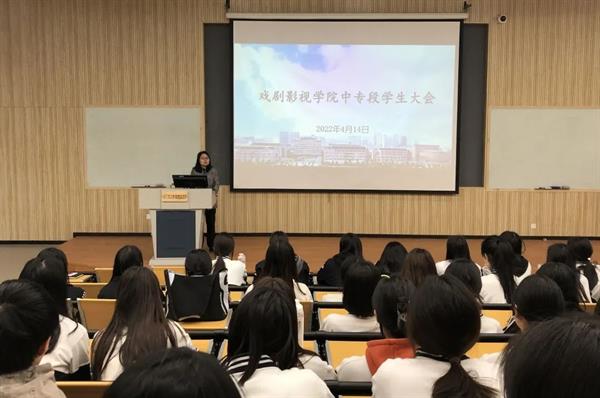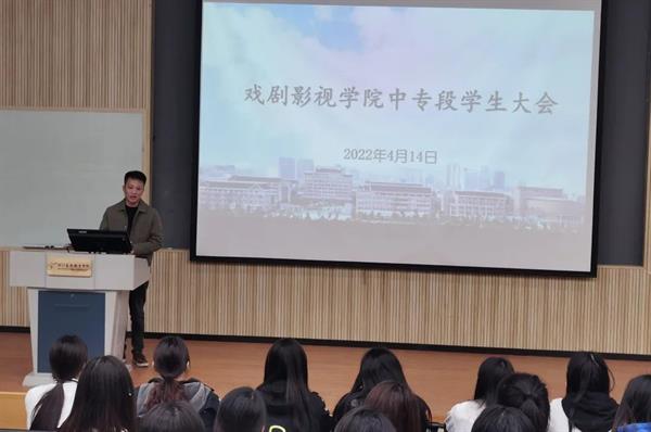 4月14日中午,戏剧影视学院在阶梯一召开全体中专学生大会。校学工部学生科科长颉顺虎,戏剧影视学院组织员、辅导员和中专班主任参会,会议由党总支专职副书记许瑛主持。