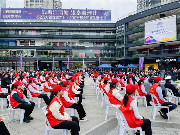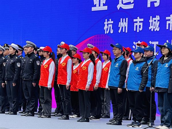 4月1日,由杭州市城管局和高新区(滨江)共同举办的“亚运有我 扮靓杭城”杭州市城市环境品质提升行动滨江站全民动员大会在星光大道举行。我校戏剧影视学院选派35名学生组成“艺光印象”志愿服务队参加。