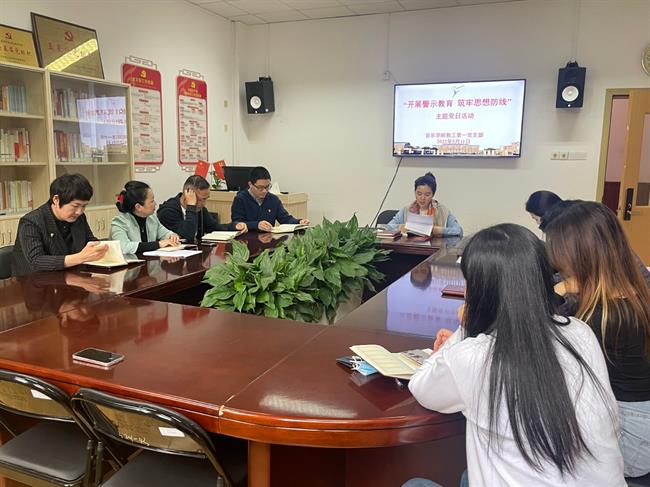 党日活动现场集体观看了警示教育片《零容忍》并通报近期典型案例。全体党员被专题片内容深深触动,接受了一次深刻的廉政教育、思想淬炼、精神洗礼。大家纷纷表示,要进一步加强党性锻炼,坚定理想信念,切实提高政治站位,牢固树立正确的世界观、人生观和价值观,以高度的责任心和使命感投身到教育事业中。