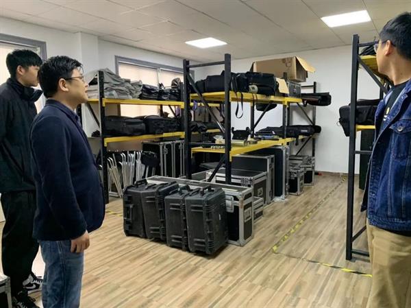 戏剧影视学院教师在公司负责人胡源的安排下,参观了四个大小影棚,办公室、医院、客厅、厨房等多个实景影棚,新片场课程培训基地和道具库、器材库等实践场所。大家对实训室建设、产教融合等问题进行谈论交流,为戏剧影视学院后续进行新大楼的影棚等实训基地建设取经。